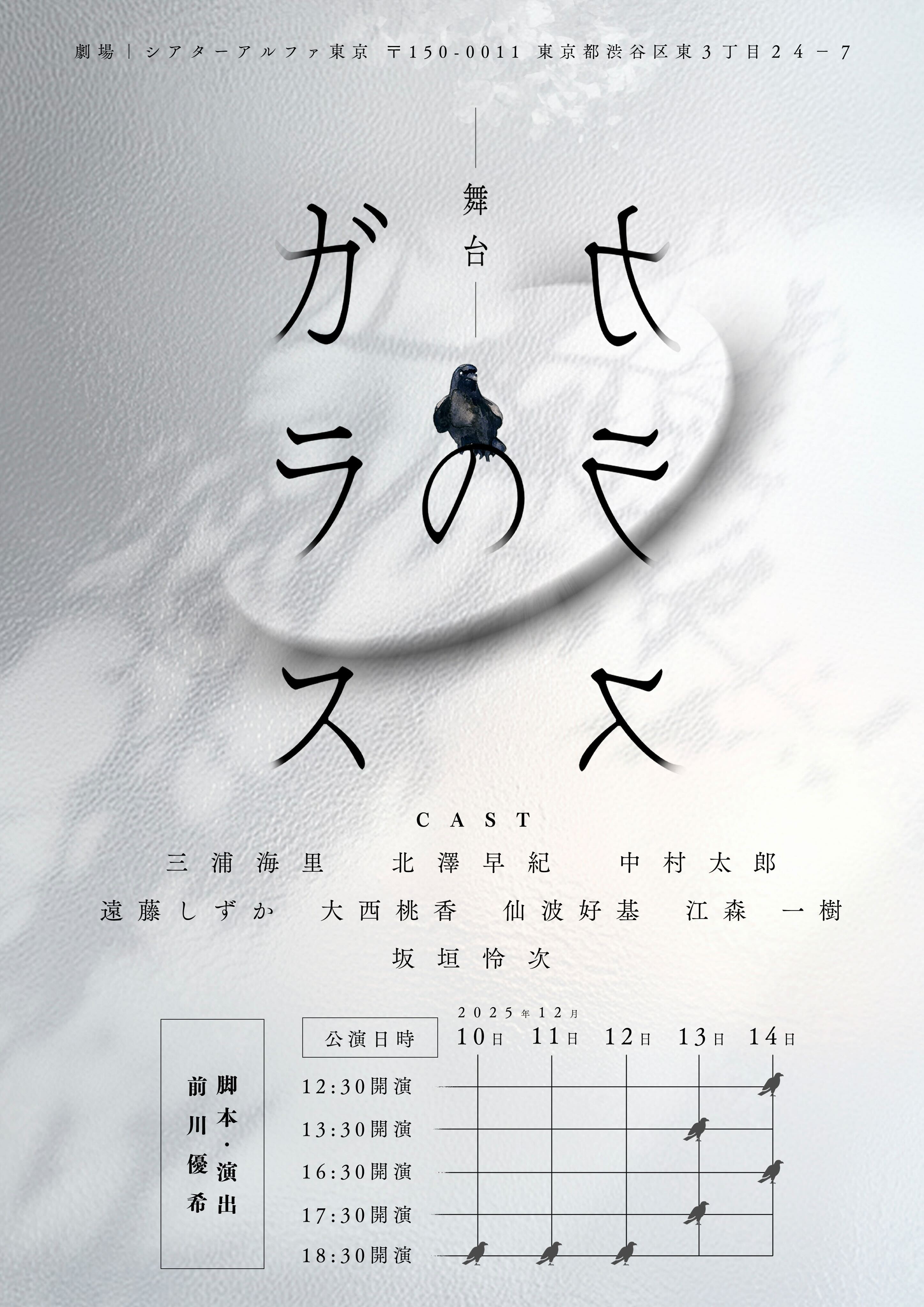 12/10(水)〜14(日) 上演、前川優希プロデュース舞台「ガラスのカラス」出演が決定いたしました!